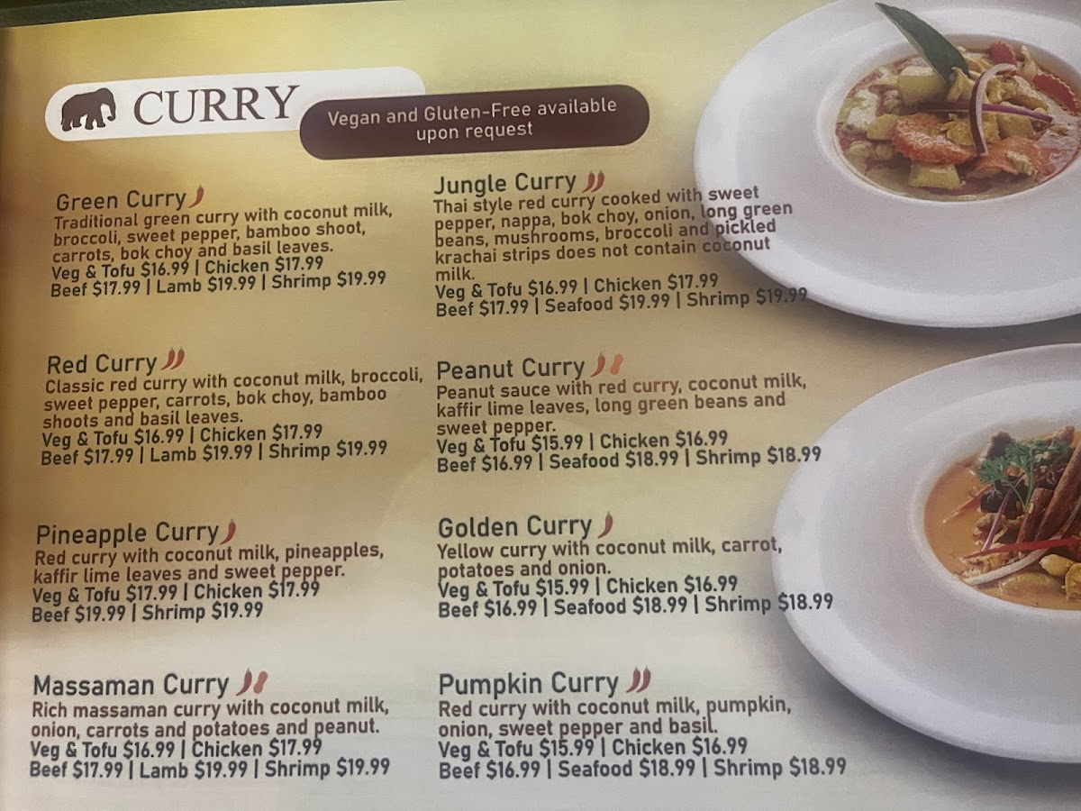 An interesting Thai eatery. Food quality is good, menu is quite extensive, and interior was nice. Beef in the soup and curry was a bit tough but the curry had decent flavour. Staff was friendly. Judging by how many people were coming in and picking up takeout orders while I dined, it seems the other dishes on their menu may be good too.