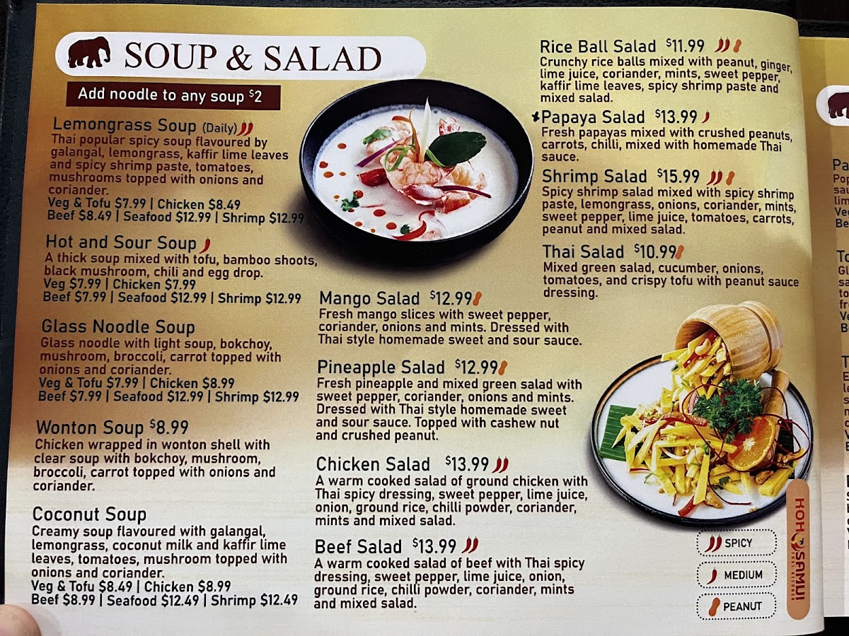 For soup lovers, the Lemongrass Soup is a popular choice, bursting with flavors of galangal, lemongrass, and kaffir lime leaves. If you're in the mood for something creamy, the Coconut Soup is a comforting option.
